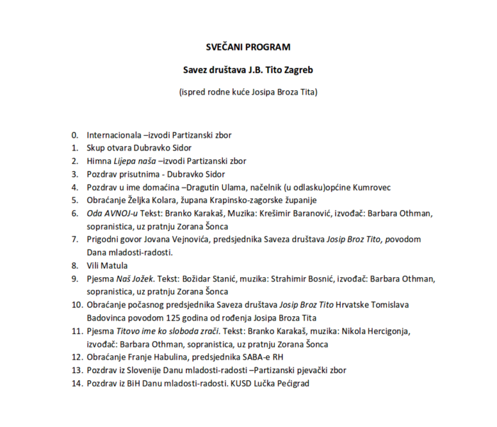 Društvo Josip Broz Tito 27. svibnja organizira Dan Mladosti-Radosti u povodu rođendana spomenutog diktatora.