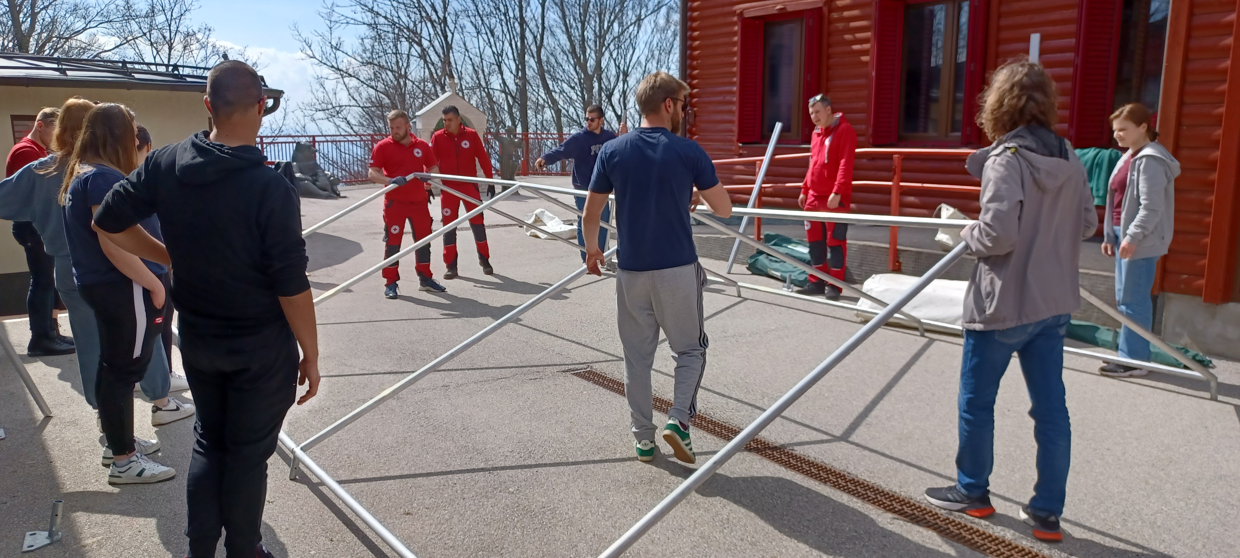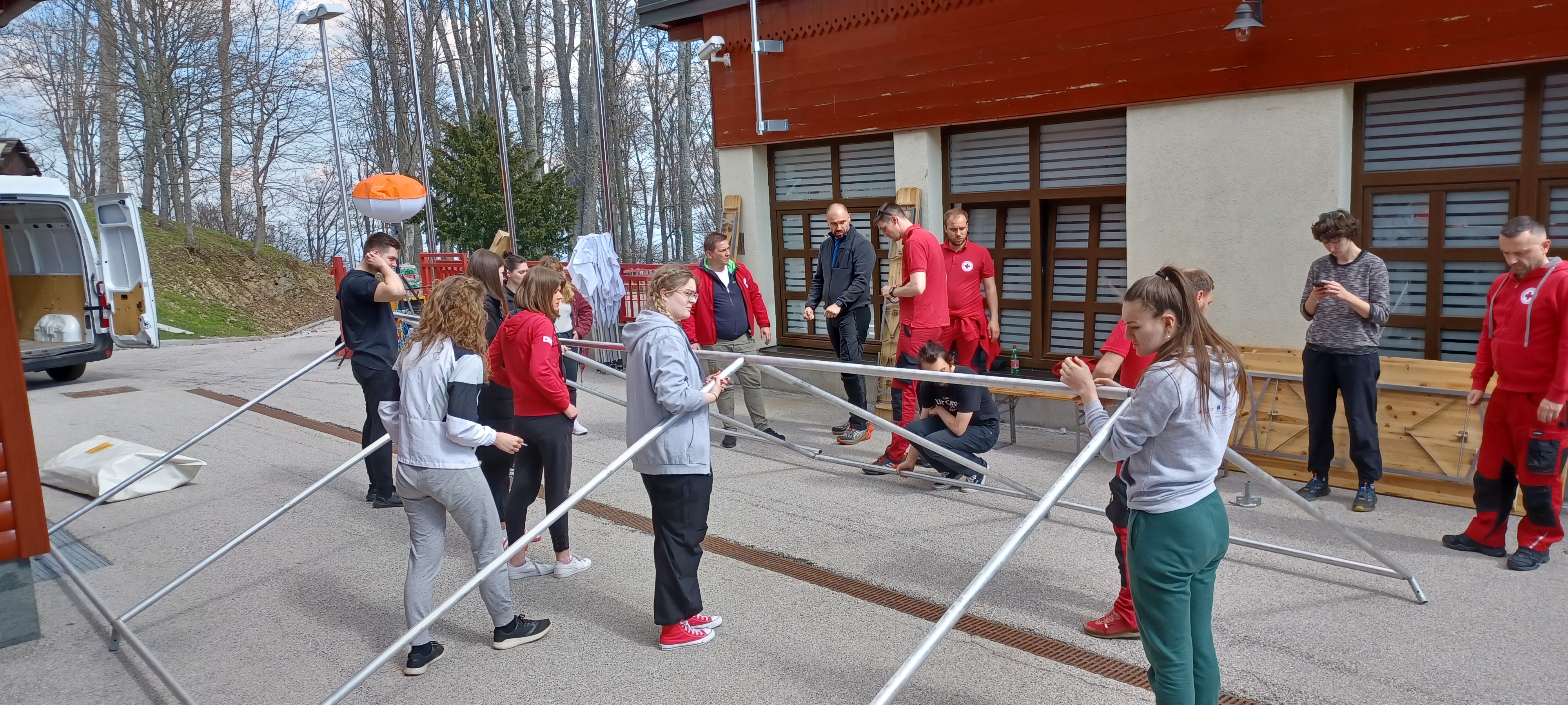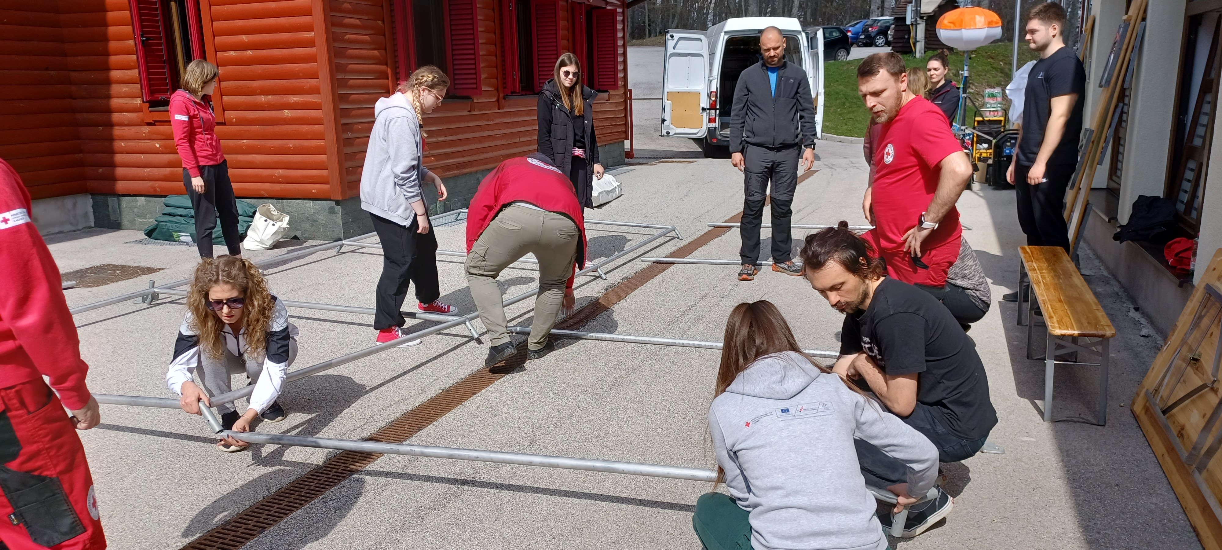 Tijekom trodnevnih intenzivnih obuka sudionici su trenirali i učili o svim aspektima postupanja u kriznim situacijama – od pružanja prve pomoći, podizanja šatorskih naselja, rukovanja s opremom za djelovanje u kriznim situacijama na terenu, pravilnoj komunikaciji unutar tima i organizacije, ali i eksterno s ostalim službama, medijima i cjelokupnom javnošću. Upoznali su se detaljno s djelovanjem Službe traženja, prikupljanjem i distribucijom prve pomoći, logistikom, pružanjem psihosocijalne podrške ugroženom stanovništvu i osobama koje unesrećenima pomažu.