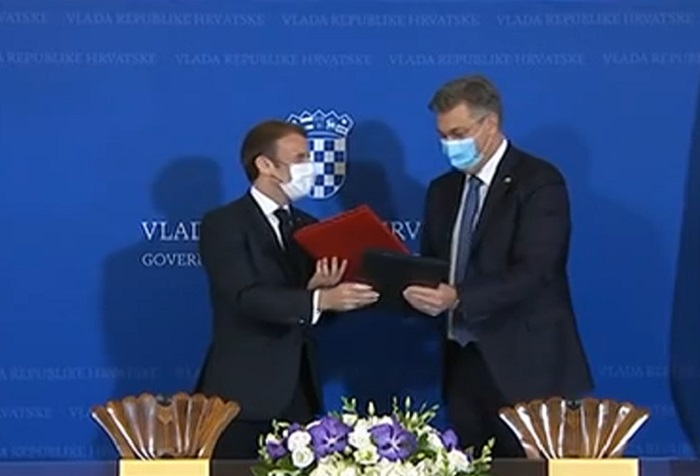 Francuski predsjednik Emmanuel Macron u Banskim dvorima održao je sastanak s predsjednikom Vlade Andrejem Plenkovićem, a u tijeku je potpisivanje ugovora za nabavu borbenih aviona.