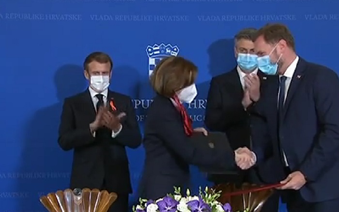 Dvoje ministara obrane, Mario Banožić i Florence Parly potpisali su ugovor o nabavi Rafala, što AFP opisuje najvećim naoružanjem Hrvatske od rata za neovisnost.