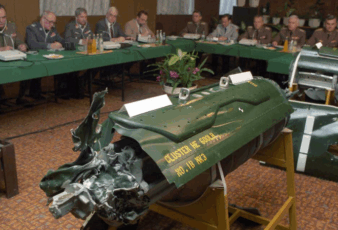 “Pilot je prije otpuštanja kasete napravio jedan cijeli krug iznad Barcsa kako bi jasno uočio metu. Zbog toga je napad neprijeporno izveden, ciljano, namjerno i unaprijed planirano”, rečeno je na konferenciji, a zatim pokazano i pismo britanskoga vojnoga atašea koje sadrži službenu izjavu britanskoga ministarstva obrane koje potvrđuje da je Velika Britanija nekoliko godina ranije prodala takve kazetne bombe Jugoslaviji.