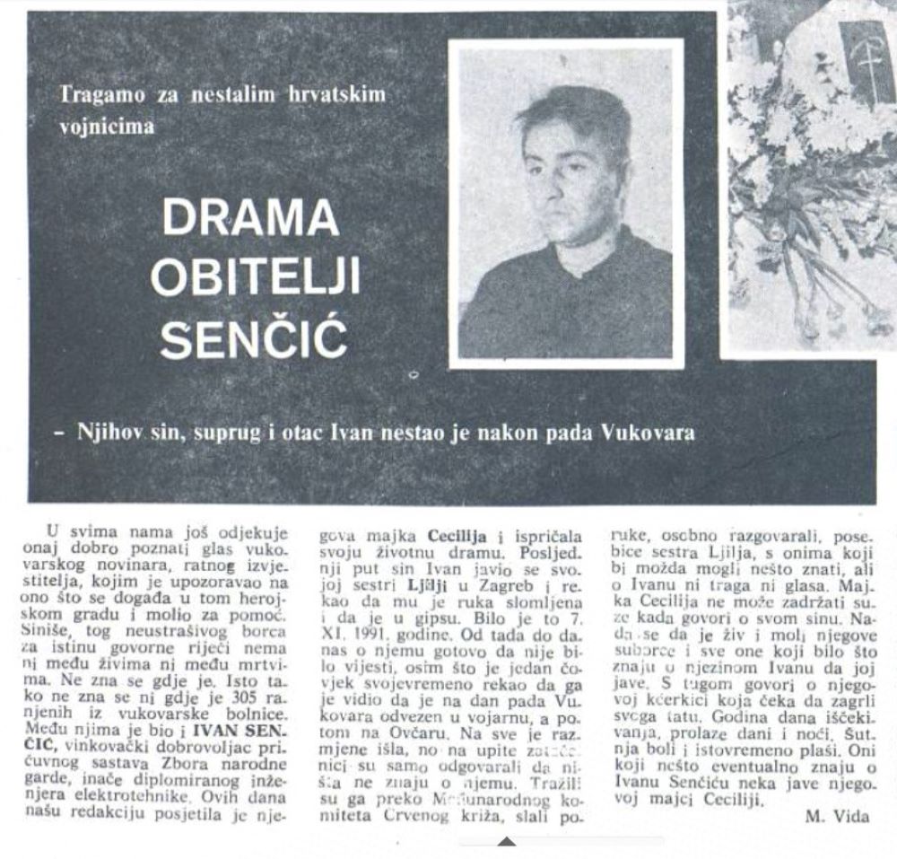 Najmlađi među njima, Ivica Senčić – Cai, živ je dočekao slom obrane Vukovara i ulazak srbočetnika i tzv. JNA u ratnu bolnicu. Ondje je zarobljen i zajedno s drugim ranjenicima i civilima deportiran na stratište Ovčara gdje nakon zlostavljanja bez milosti ubijen. Njegovom identifikacijom, agonija obitelji Senčić je napokon završena, a njegovi najmiliji mogu pronaći barem djelomični mir.