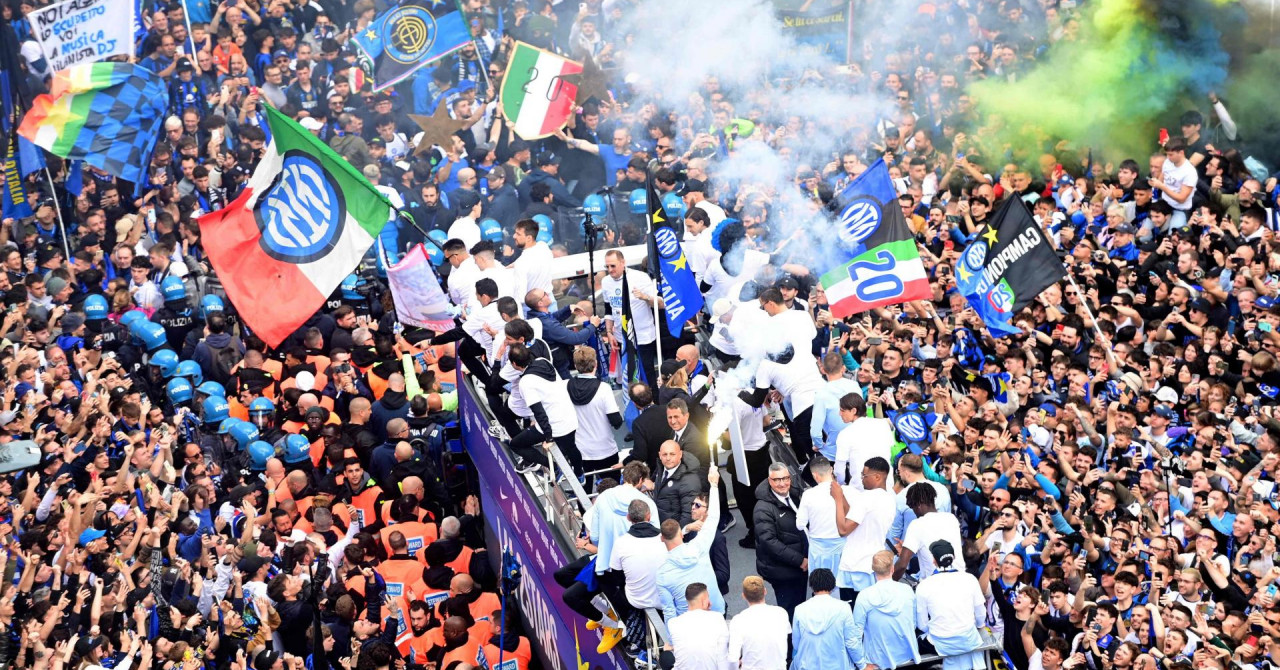 A nakon posljednjeg sučevog zvižduka moglo je početi veliko slavlje. Igrači Intera zaputili su se na krov autobusa, s kojim je krenula vožnja kroz desetke tisuća navijača u crno-plavim bojama, koji su okupirali kultni San Siro.