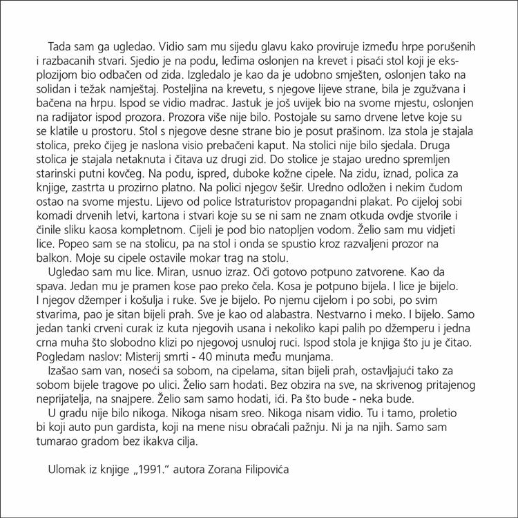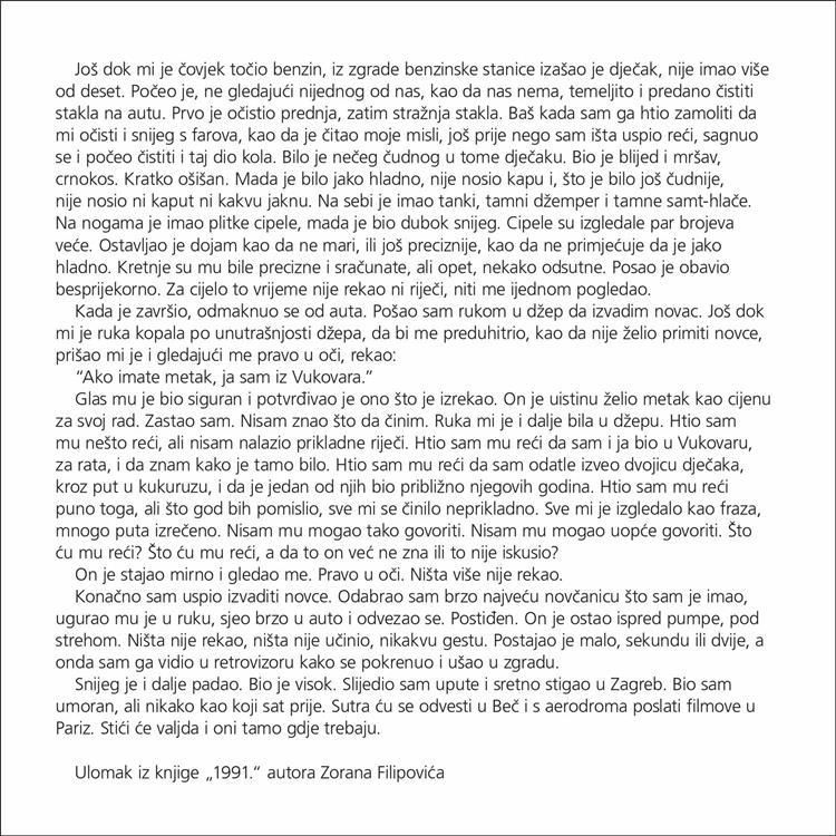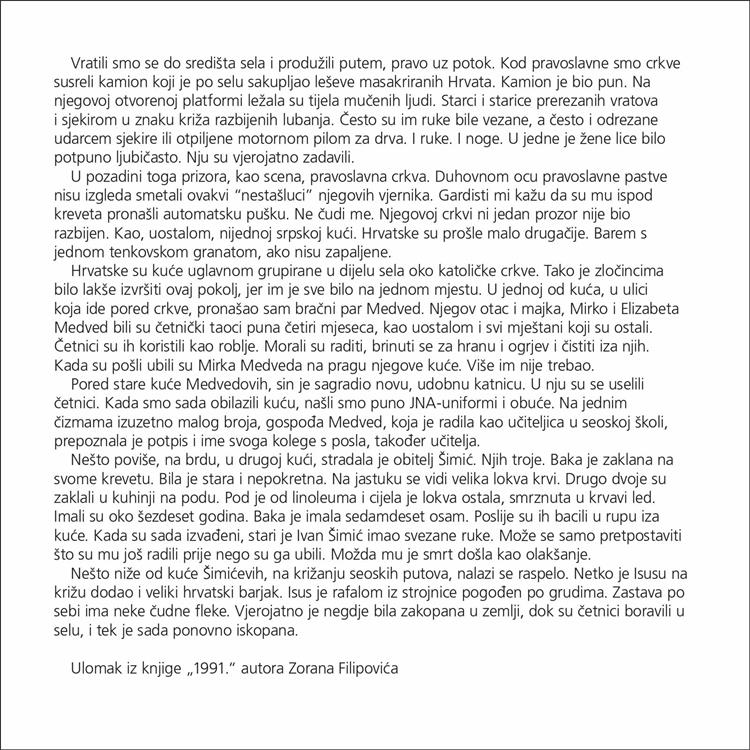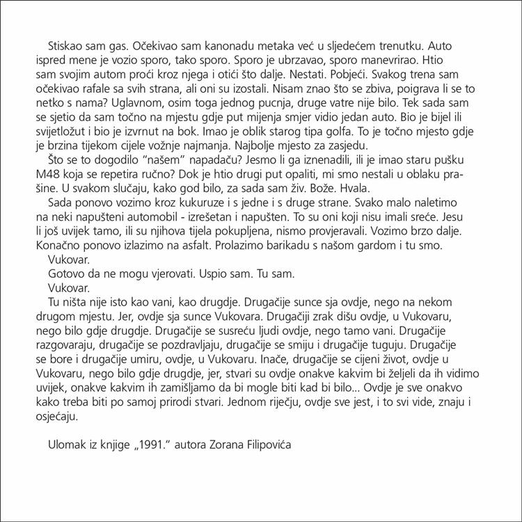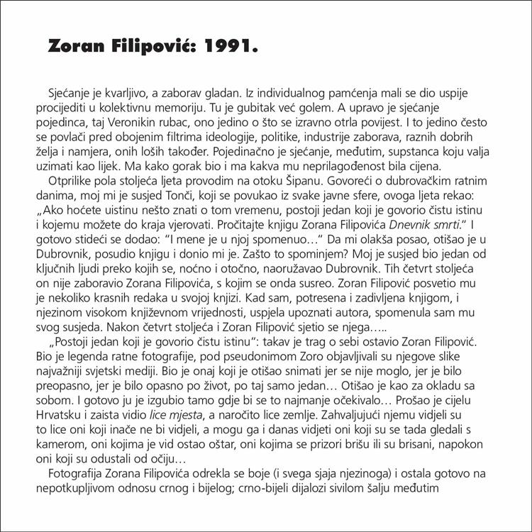 Povodom 25. obljetnice vojno-redarstvene operacije Bljesak, Ministarstvo hrvatskih branitelja objavljuje izložbu fotografija iz Domovinskog rata, "1991" autora Zorana Filipovića. Fotografije će biti dostupne za prikaz do 30. svibnja 2020.