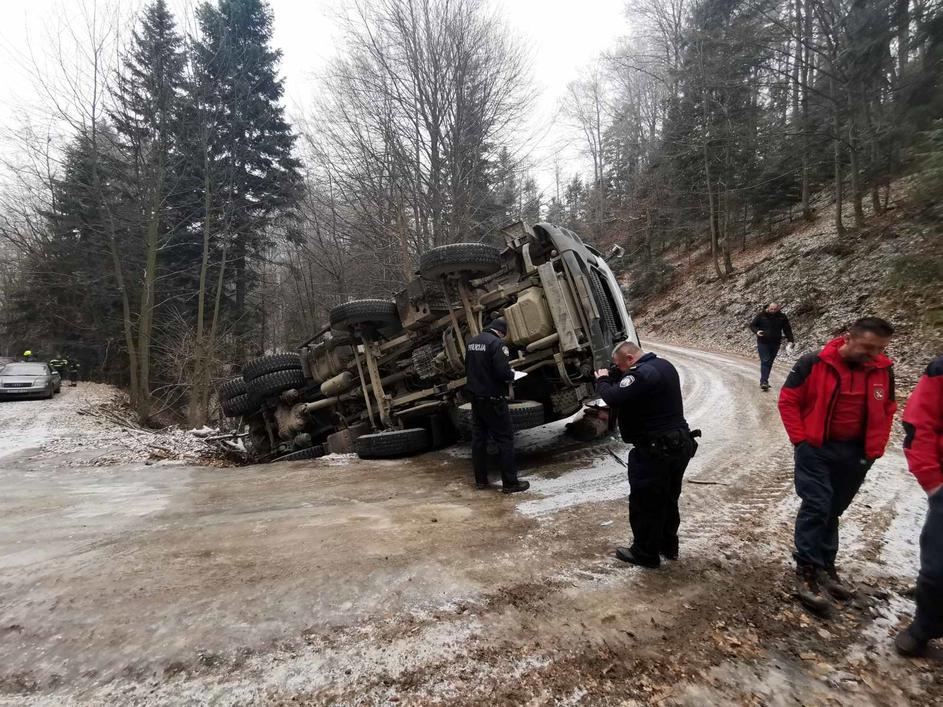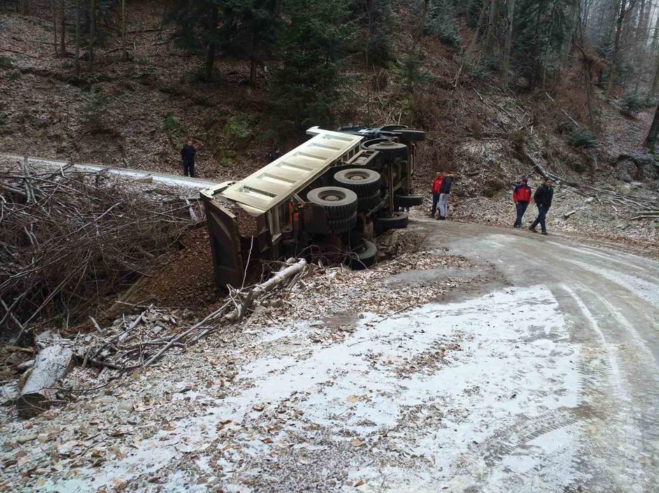 U ponedjeljak oko 10 sati, sedam kilometara od glavne ceste u šumi kod Požege prevrnuo se kamion.