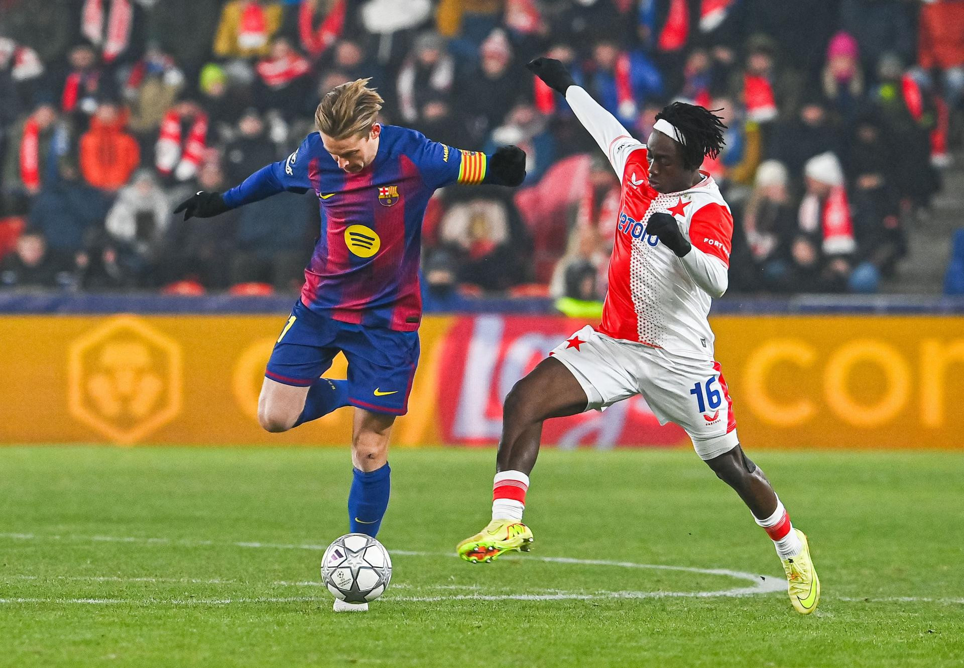 Slavia je u Pragu iznenadila Barcelonu u 10. minuti kada Holeš asistira za strijelca Vasila Kušeja, ali poslije efektne akcije Fermin u 34. minuti na dodavanje De Jonga vraća rezultat u egal. Fermin na tome ne staje već u 42. minuti pogađa za vodstvo gostiju, ali dvije minute kasnije događa se nešto posve neuobičajeno kada Lewandowski glavom postiže autogol i tako se na odmor otišlo s neodlučenih 2:2. Kvaliteta gostiju dolazi do izražaja u nastavku, a Dani Olmo im donosi prednost odličnim udarcem s ruba šestnaesterca u rašlje, da bi se Robert Lewandowski iskupio za veliku grešku iz prvog poluvremena i u 71. minuti odveo Barcelonu na nedostižnih 4:2.