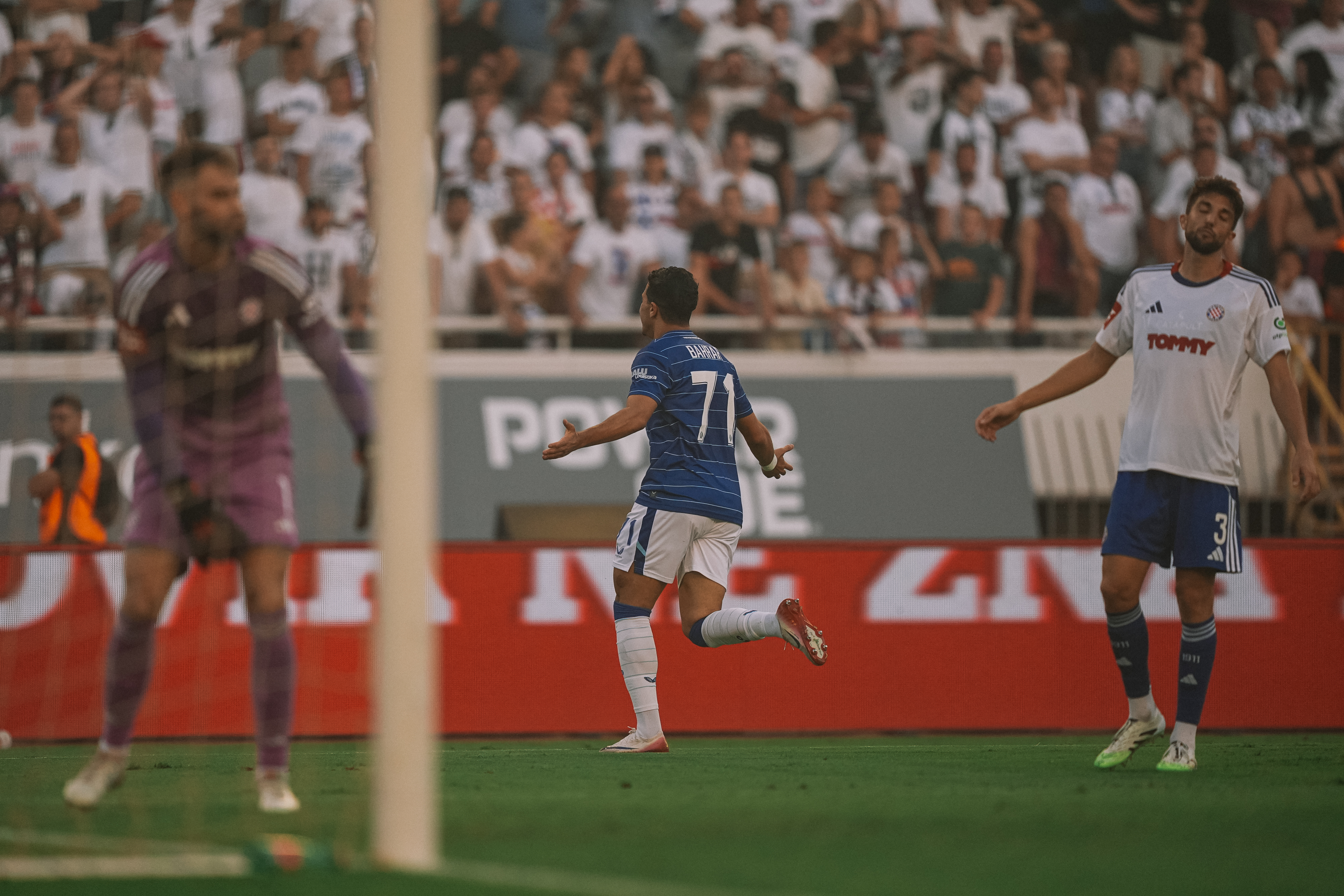 Serija izmjena i bakljada na tribinama nakratko su usporile ritam, no u 80. minuti uslijedio je trenutak odluke. Monsef Bakrar snažnim udarcem s 15 metara pod gredu matirao je Ivušića i zaključio priču – 0-2.