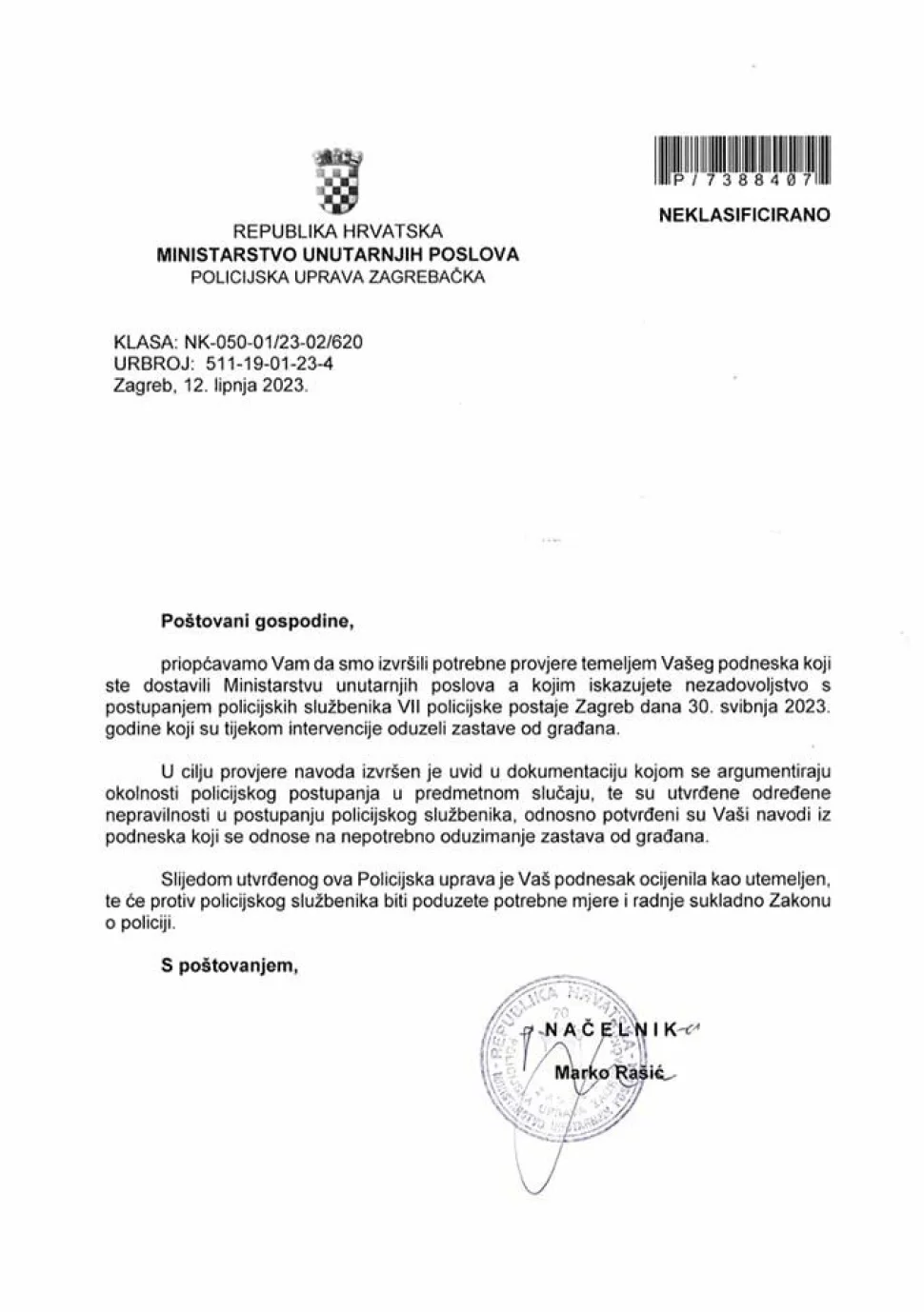 Iz Policijske uprave zagrebačke nam je prije deset dana stigla tek najava odgovora, nakon što smo se pozvali na pravo na pristup informacijama, kojeg prenosimo u cijelosti.