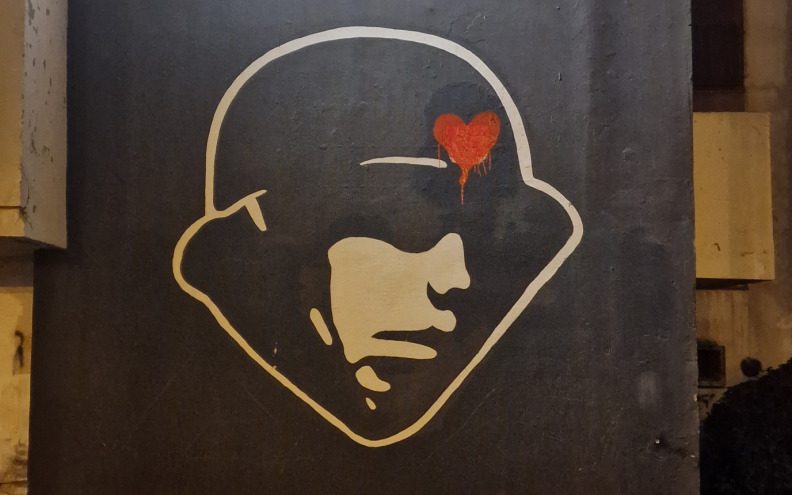 Nepoznati počinitelj vandalizirao mural hrvatskom vojniku, prešarao šahovnicu s crvenim srcem