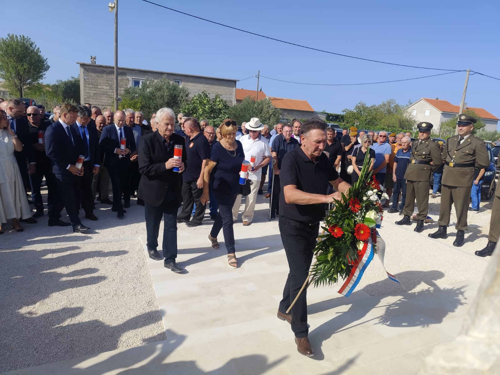 Na otkrivanju spomenika okupila se brojna publika i visoki uzvanici: ministar Šipić, državna tajnica Pletikosić, načelnik općine Poličnik Davor Lončar, župan Josip Bilaver, gradonačelnik Zadra Šime Erlić, gradonačelnik Benkovca Tomislav Bulić, gradonačelnik Biograda Ivan Knez, ravnatelj Parka prirode Vransko jezero Šime Mršić te mnogi drugi predstavnici političkog, društvenog i braniteljskog života.