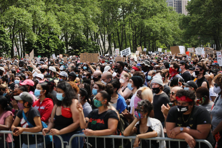 U New Yorku, koji je bio pogođen i pljačkama tijekom prosvjeda, tisuće ljudi sudjelovalo je u komemoraciji za Floyda, održanoj u parku Brooklyn. Mnogi među njima kleknuli su na travu za sunčana poslijepodneva, u znak prosvjeda protiv policijskog ponašanja i izvikivali: “Ni pravde, ni mira”.