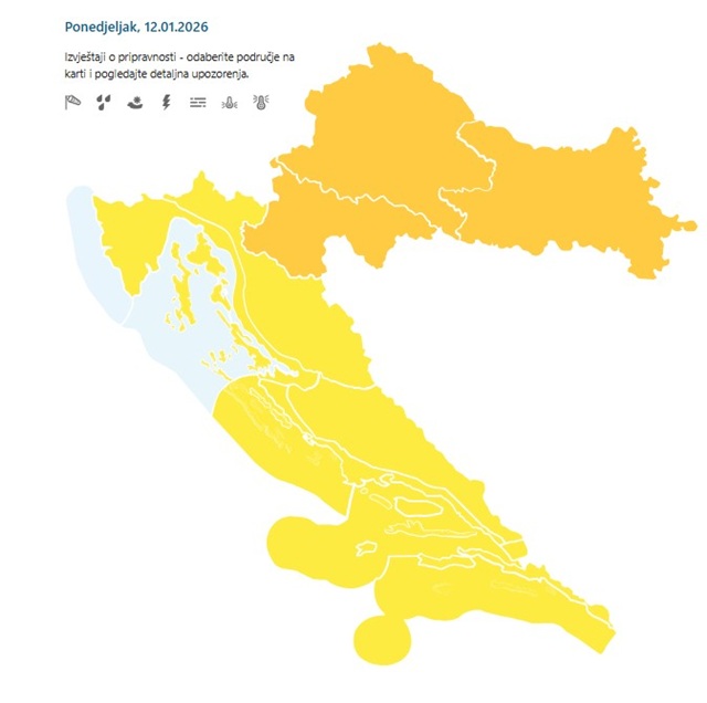 DHMZ je zbog hladnog vala i poledice izdao upozorenja za cijelu Hrvatsku, dok je u Dalmaciji na snazi upozorenje zbog jake bure. “Budite na oprezu zbog rasprostranjenog padanja snijega i/ili leda na cestama i pločnicima. Moguć je lokalizirani prekid aktivnosti na otvorenom. Pripazite pri hodanju, bicikliranju ili vožnji na skliskim površinama. Budite spremni na hladnoću i izrazito niske temperature. Zdravstveni rizik moguć je kod osjetljive populacije, ponajprije kod starijih, male djece i beskućnika. Slušajte i postupajte prema savjetima danima od nadležnih službi”, poručuju iz DHMZ-a.