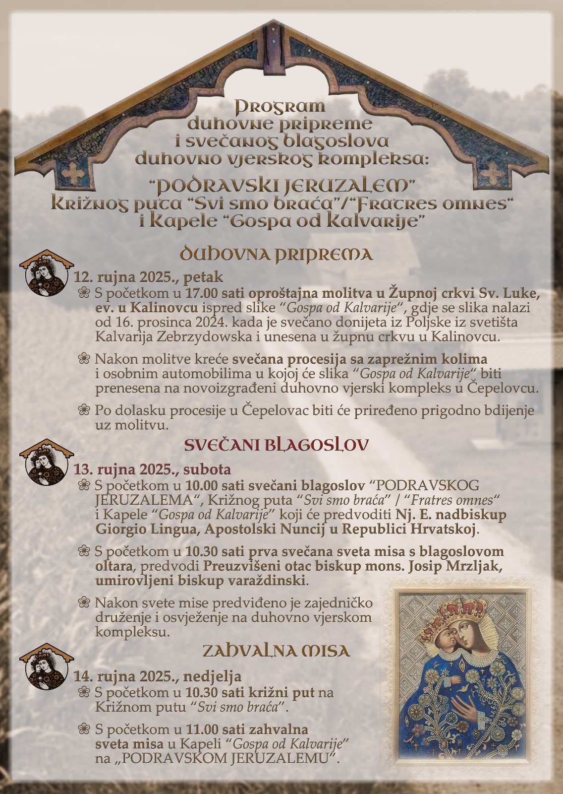 Otvoren blagoslovom, „Podravski Jeruzalem“ postaje mjesto hodočašća, misa, procesija i osobne molitve – prostor u kojem se vjera živi, zajedništvo jača, a poruka „Svi smo braća“ dobiva svoju vidljivu i trajnu potvrdu.
