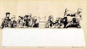 Slika Miće Popovića "Tajna večera" (1989.) na kojoj je mjesto Spasitelja (Isusa Krista) prazno - ostavljeno za Slobodana Miloševića kojeg se očekuje kao "srpskog Mesiju"