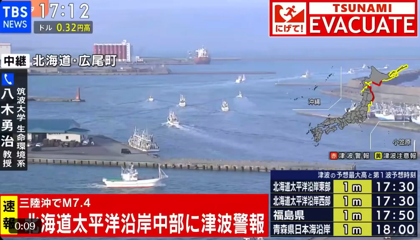 7.4 magnitude earthquake hit Hokkaido, Aomori, and Iwate in Japan.