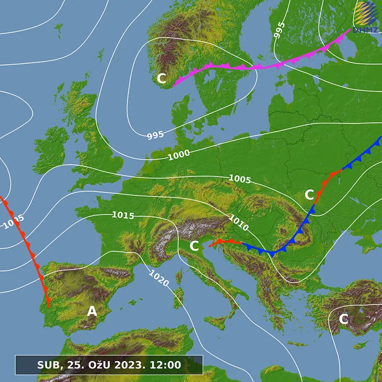 U subotu prijepodne će biti promjenljivo do pretežno oblačno s kišom. Lokalno je moguća i grmljavina te prolazno pojačan vjetar. Od sredine dana postupan prestanak oborine i razvedravanje sa zapada. Jug zemlje će biti najsunčaniji i uglavnom suh. Vjetar slab i umjeren sjeverni i sjeverozapadni, u gorju te popodne i u središnjim predjelima jugozapadni. Na Jadranu će većinom umjeren jugozapadnjak i jugo prolazno okrenuti na sjeverozapadnjak. Najniža jutarnja temperatura zraka od šest do 10, na moru između 10 i 13 °C. Najviša dnevna od 12 do 17 u unutrašnjosti te između 15 i 19 °C duž obale.