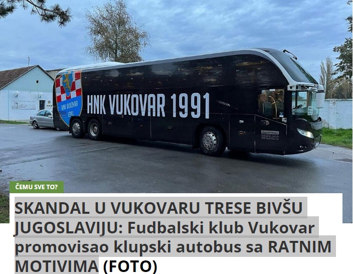 Tako je Kurir donio naslov, u originalu: ‘SKANDAL U VUKOVARU TRESE BIVŠU JUGOSLAVIJU: Fudbalski klub Vukovar promovisao klupski autobus sa RATNIM MOTIVIMA’, a tekst je još fascinantniji.