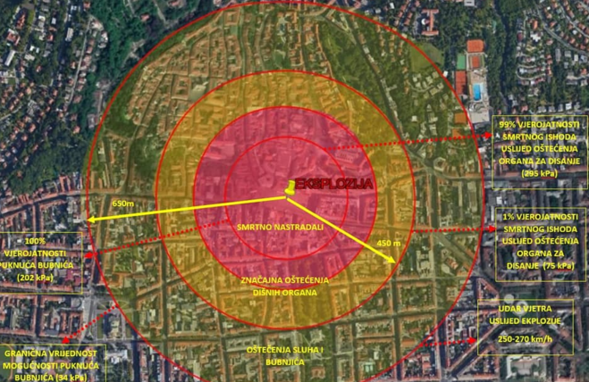 “Eksplozija u Beirutu bila je jedna od najsnažnijih mirnodopskih eksplozija u povijesti. Ako provučemo podatke o posljedicama kroz računalne programe i prebacimo na centar Zagreba dobijemo vrlo plastičan prikaz ove strašne tragedije”, napisali su uz objavljene projekcije.