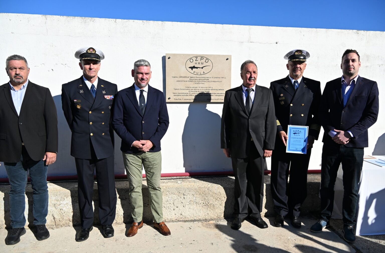U pulskoj vojarni Vargarola svečano je otkrivena spomen-ploča u povodu 34. godišnjice uključivanja Samostalnog odreda za podvodna djelovanja Teritorijalne obrane Pula u sustav Hrvatske ratne mornarice. Ova postrojba, poznata po svojoj hrabrosti, stručnosti i iznimnoj predanosti, dala je nemjerljiv doprinos obrani Republike Hrvatske tijekom Domovinskog rata.