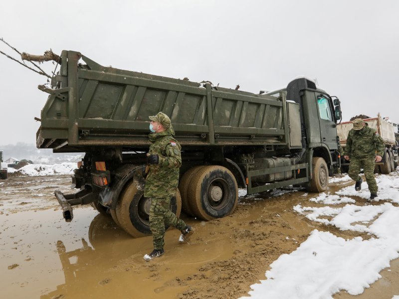 U petrinjskoj ulici Sajmište mehanizacija Hrvatske vojske priprema teren za buduće kontejnersko naselje. U njemu će biti smješteni svi koji su trenutačno u vojarni i školi. Hrvatska vojska u Majskim Poljanama sanira prometnice i odvodne kanale kako bi se kontejneri mogli dopremiti u udaljena mjesta.