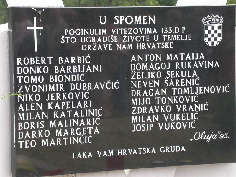Imena Robert Barbić, Donko Barbijani, Tomo Biondić, Zvonimir Dubravčić, Alen Kapelari, Niko Jerković, Boris Malinarić, Milan Katalinić, Darko Margeta, Teo Martinčić, Anton Mataija, Domagoj Rukavina, Željko Sekula, Neven Šarenić, Dragan Tomljenović, Mijo Tonković, Zdravko Vranić, Milan Vukelić, Josip Vuković pripadnici 133. Pukovnije HV zlatnim slovima uklesana su u povijest stvaranja hrvatske države, piše Nacionalno.hr.