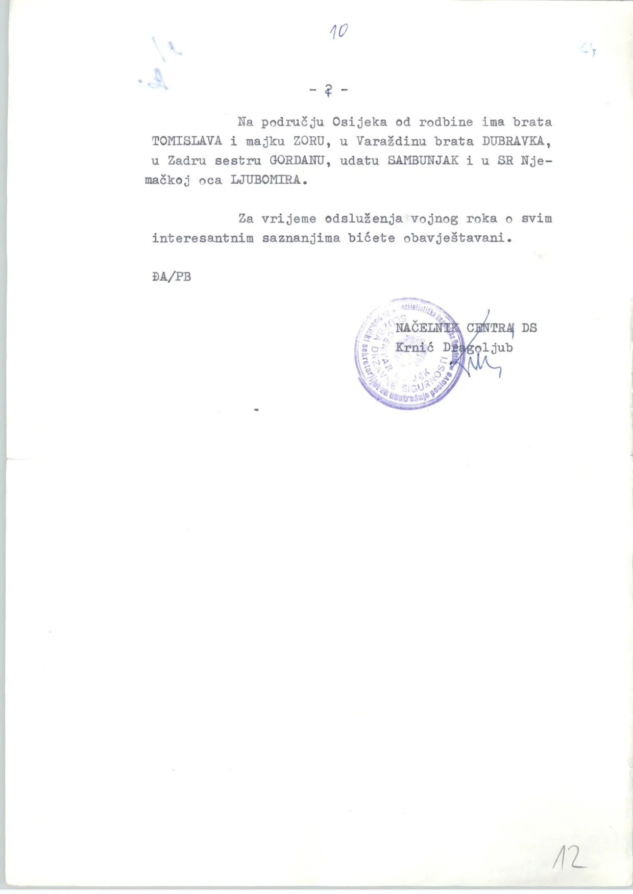 Pismo Centra za državnu sigurnost u Osijeku potpisao je načelnik UDBA-e Dragoljub Krnić, inače čovjek kojemu nije pofalila nikada niti “dlaka” s glave, niti njegovoj obitelji, nakon što su 30. svibnja 1990. godine na vlast došle, (kako su oni govorili za nas), “ustaše”.