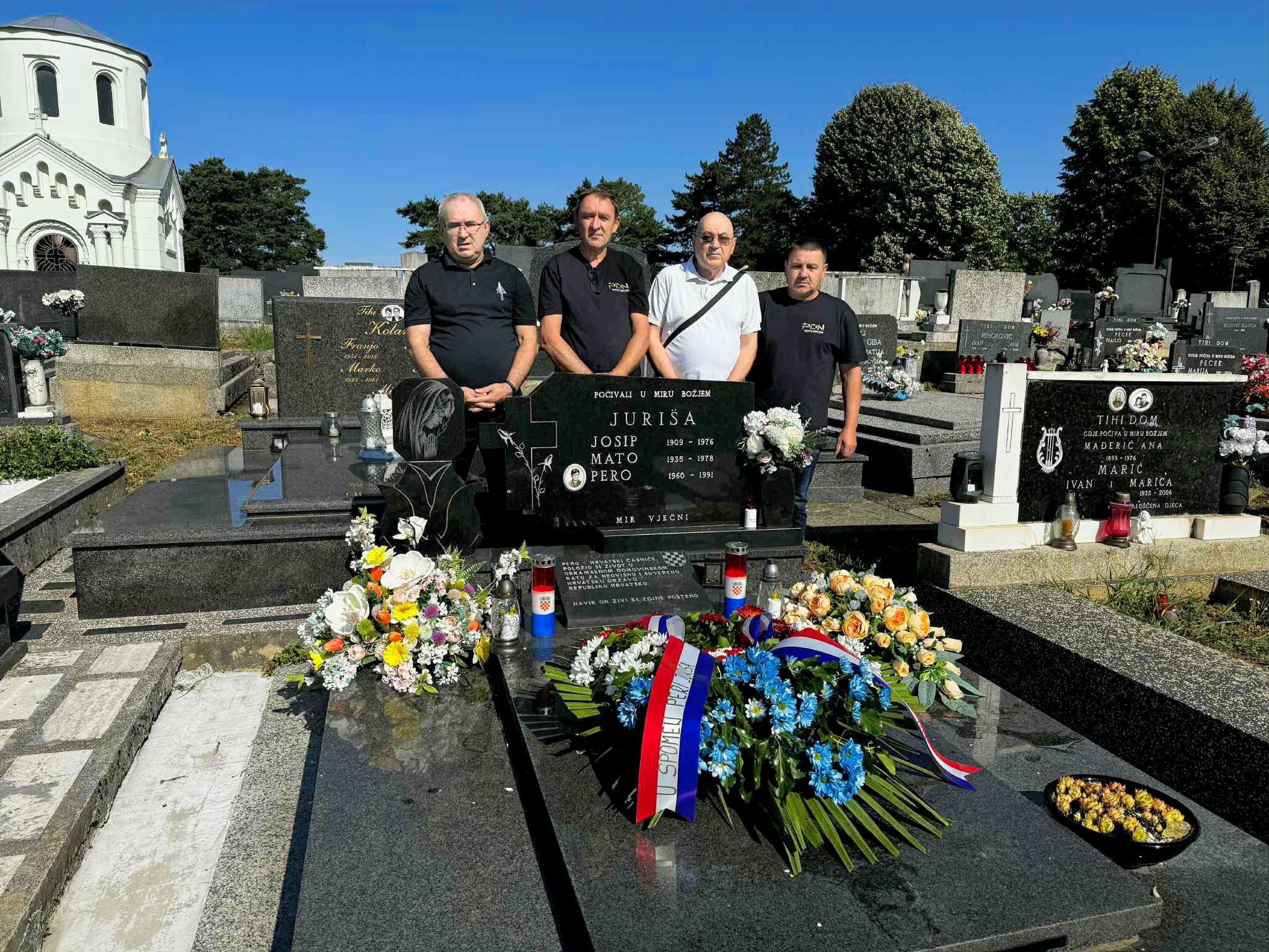 Pitomača / Kladare / – Udruga hrvatskih branitelja RH danas je na mjesnom groblju u Pitomači i kod spomen-obilježja poginulim hrvatskim braniteljima u Kladarama položila vijenac i zapalila svijeće u čast pokojnog hrvatskog branitelja Pere Juriše, bivšeg pripadnika legendarne 2. gardijske brigade „Gromovi“, koji je tragično stradao 6. srpnja 1991. godine u četničkoj zasjedi u Ljubovu, na području Like.