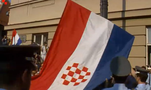 Oni su na plakat stavili službenu hrvatsku zastavu koja je 1990. godine razvijena na Markovom trgu u Zagrebu.